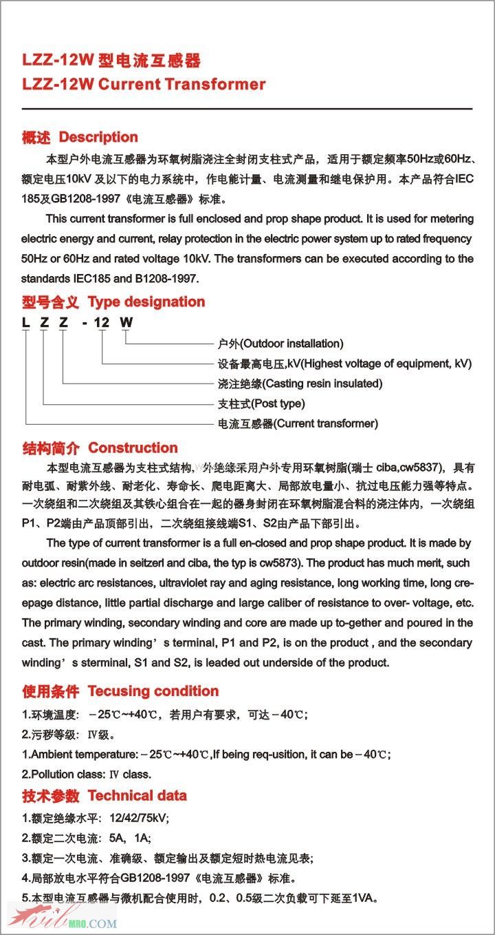 产品标题:LZZ-12W电流互感器