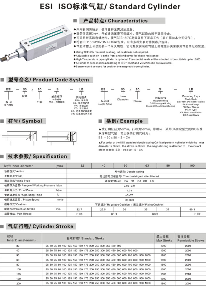 产品标题:ESI ISO标准气缸,EASUN亿日气动气缸