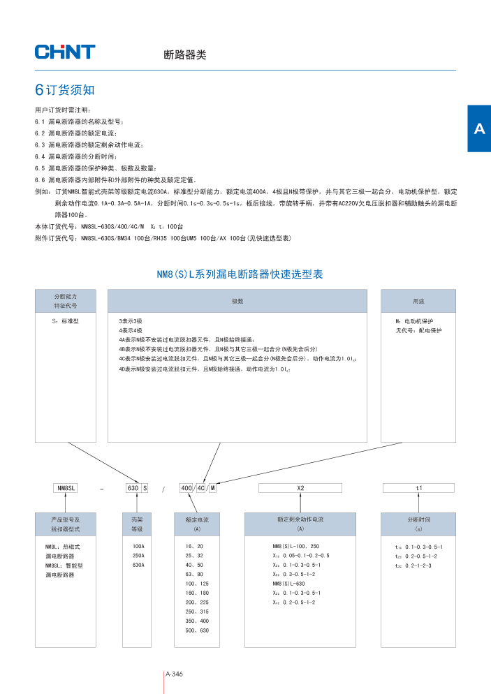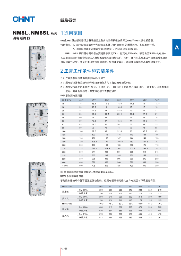 NM8L,NM8SL系列漏电断路器主要适用于交流50Hz,额定电压至400V,额定电流至630A的电路中。其主要功能是对有致命危险的人身触电提供间接接触保护。同时,还可用来防止由于接地故障电流而引起的电气火灾。并可用来保护线路的过载、短路和欠电压,亦可作为线路的不频繁转换之用。