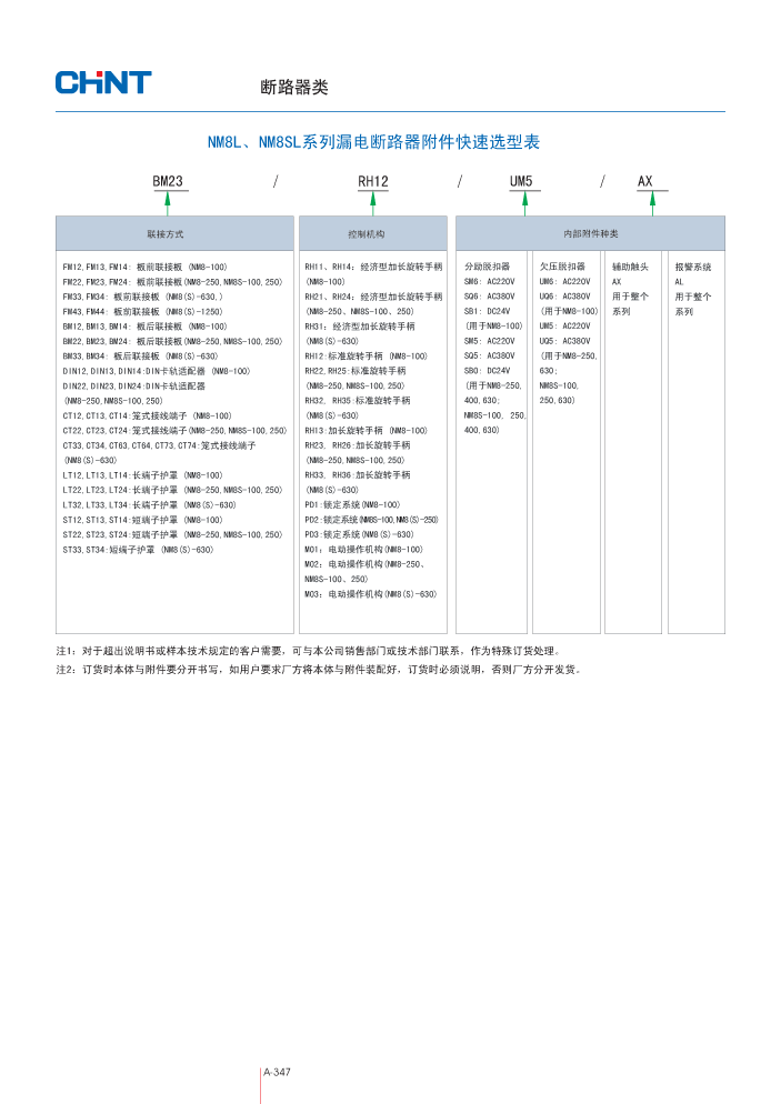 1、漏电断路器的附件与断路器本体(相同的壳架)的附件通用,其配置也一样;