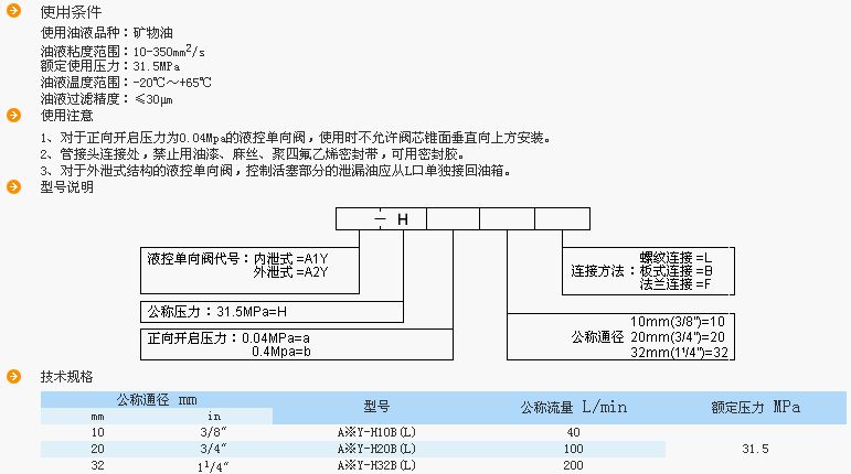 A1Y-Hb20L,液控单向阀